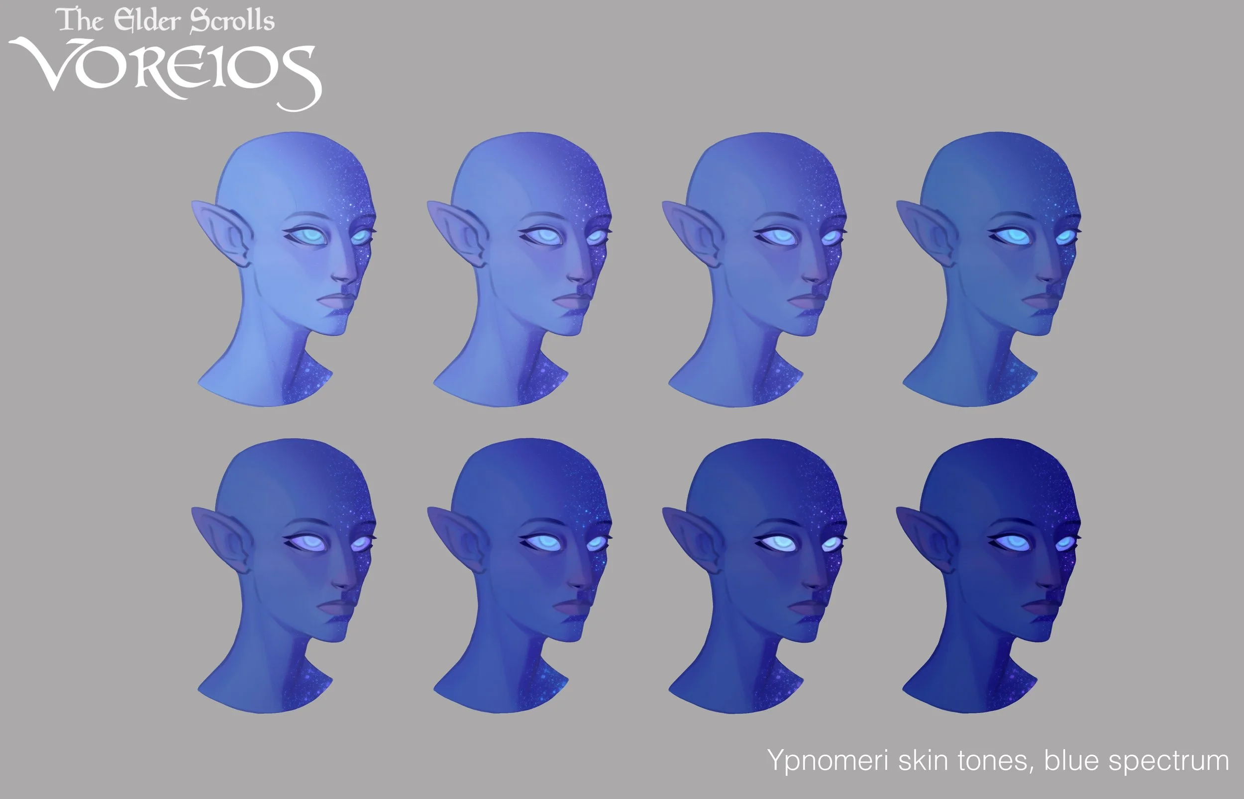 The history of Voreios is laden with true love, political plots, reverence for nature, and endless mystery. The general concept was a new continent for an original race, The Ypnomer (Dreaming Elves), to reside on in The Elder Scrolls universe. The Ypnomer are among my favorite original concepts that I’ve labored on over the years. Scroll (pun intended) to check out some of the work I’ve done for this fascinating race of blue-skinned people and their home!